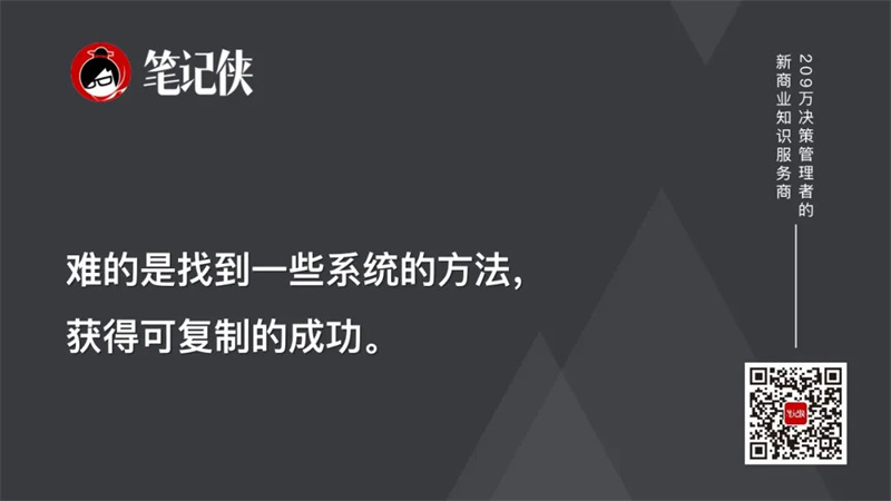 偶爾做成一件事並不難,有些時候僅(jin) 僅(jin) 是運氣使然,難的是找到一些係統的方法,獲得可複製的成功。