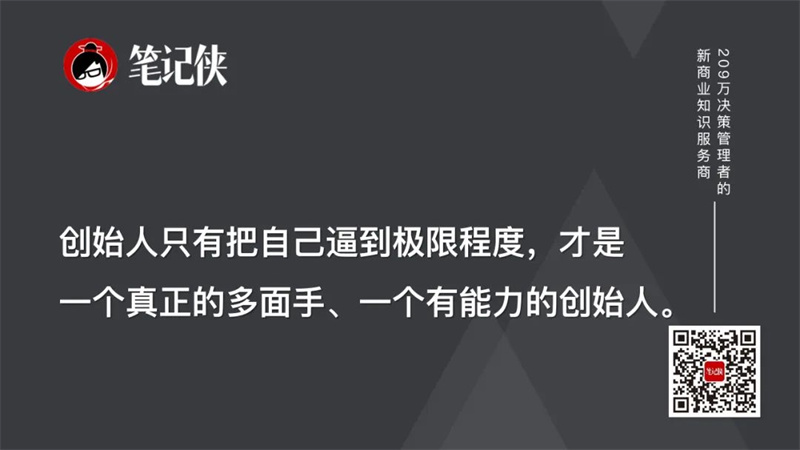 所以創始人隻有把自己逼到極限程度,他才是一個(ge) 真正的多麵手,才是一個(ge) 有能力的創始人。