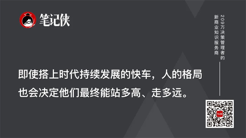 即使搭上時代持續發展的快車,人的格局也會(hui) 決(jue) 定他們(men) 最終能站多高、走多遠。