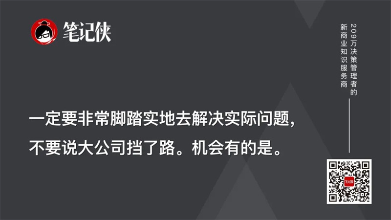 一定要非常腳踏實地去解決(jue) 實際問題,不要說你們(men) 這些大公司擋了路。機會(hui) 有的是。
